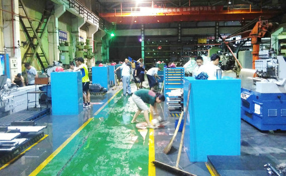 由于降雨量超過(guò)管道排污量,雨水從排污井蓋噴涌而出。車(chē)間領(lǐng)導(dǎo)迅速啟動(dòng)應(yīng)急方案,掃水、拖地、搬零件……一切井然有序地進(jìn)行。晚上10點(diǎn)多,車(chē)間現(xiàn)場(chǎng)恢復(fù)正常。