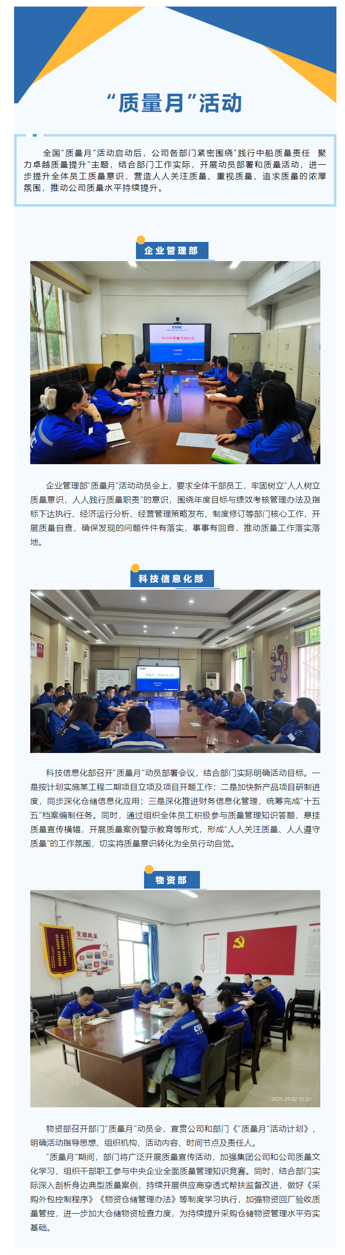 中船陜柴各部門扎實開展“質量月”活動(一)