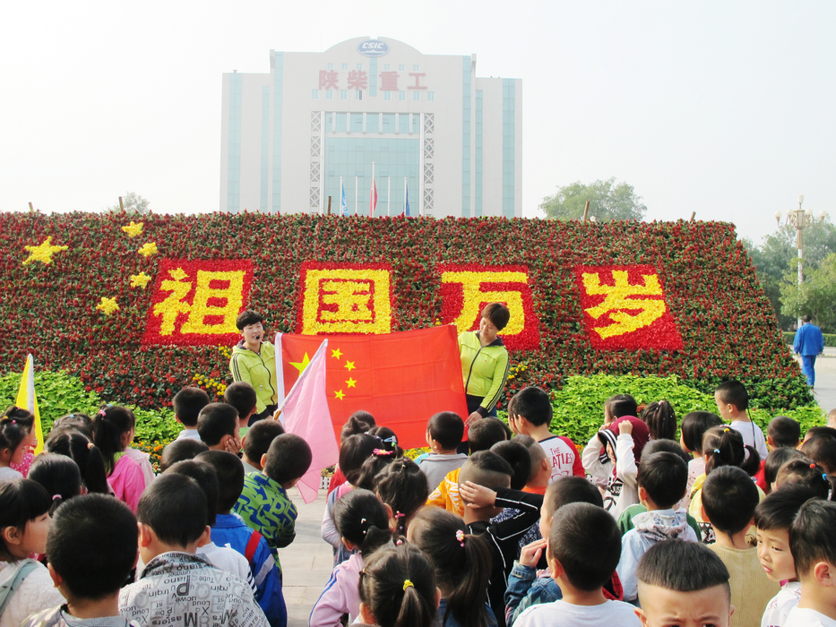9月30日上午,陽光明媚,秋風送爽。公司中門的國慶花壇前孩子們一張張天真可愛的笑臉和嘹亮的歌聲吸引了不少人駐足觀看,陜柴幼兒園正在這里舉行一場愛國主義教育活動。