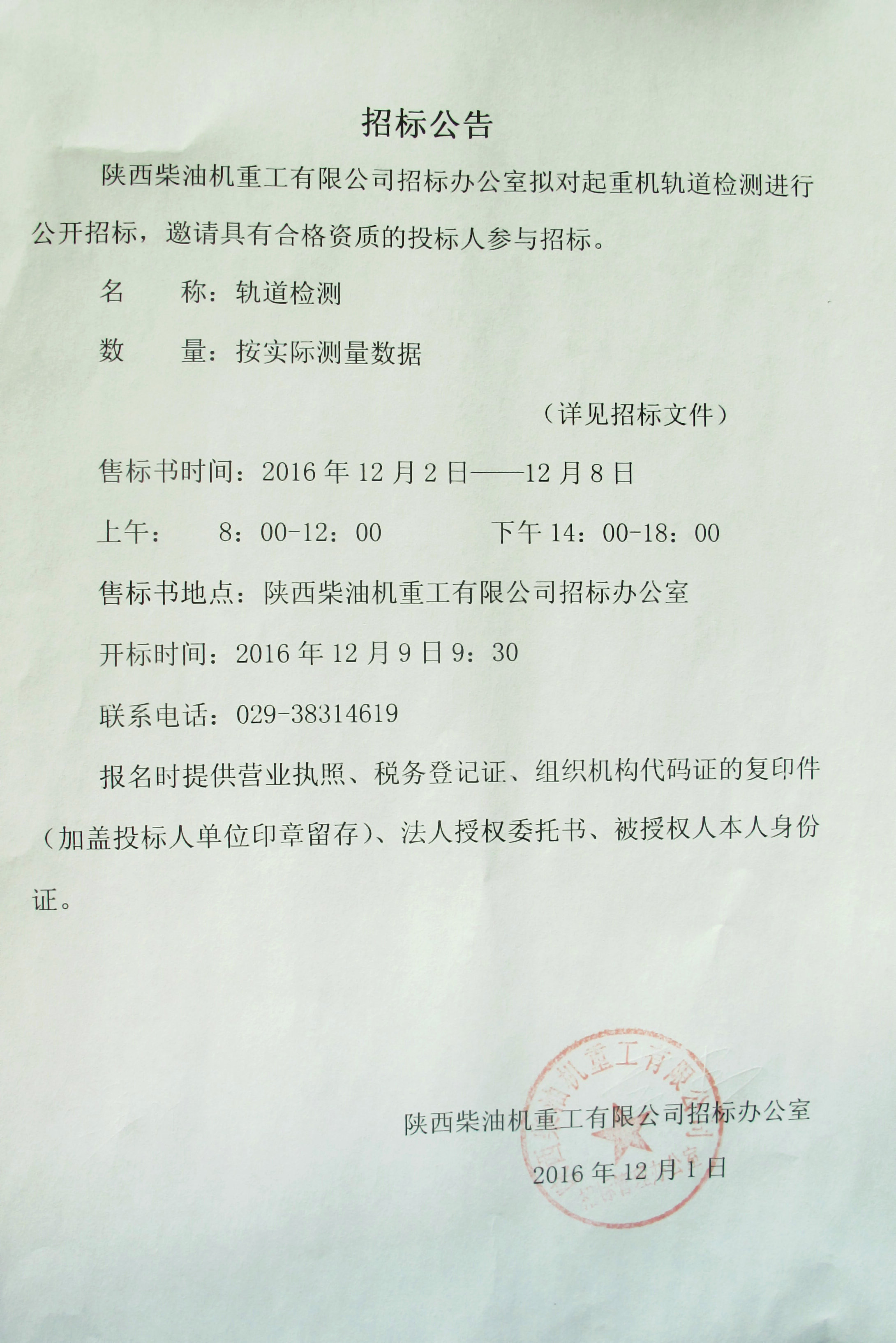 起重機軌道檢測招標公告