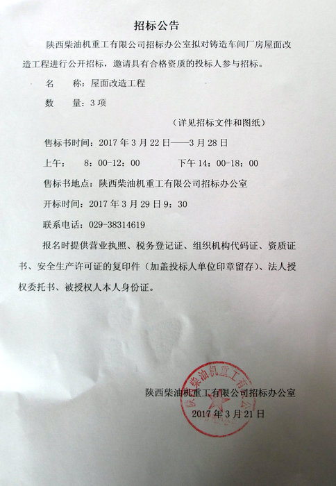 鑄造車間廠房屋面改造工程公開招標(biāo)