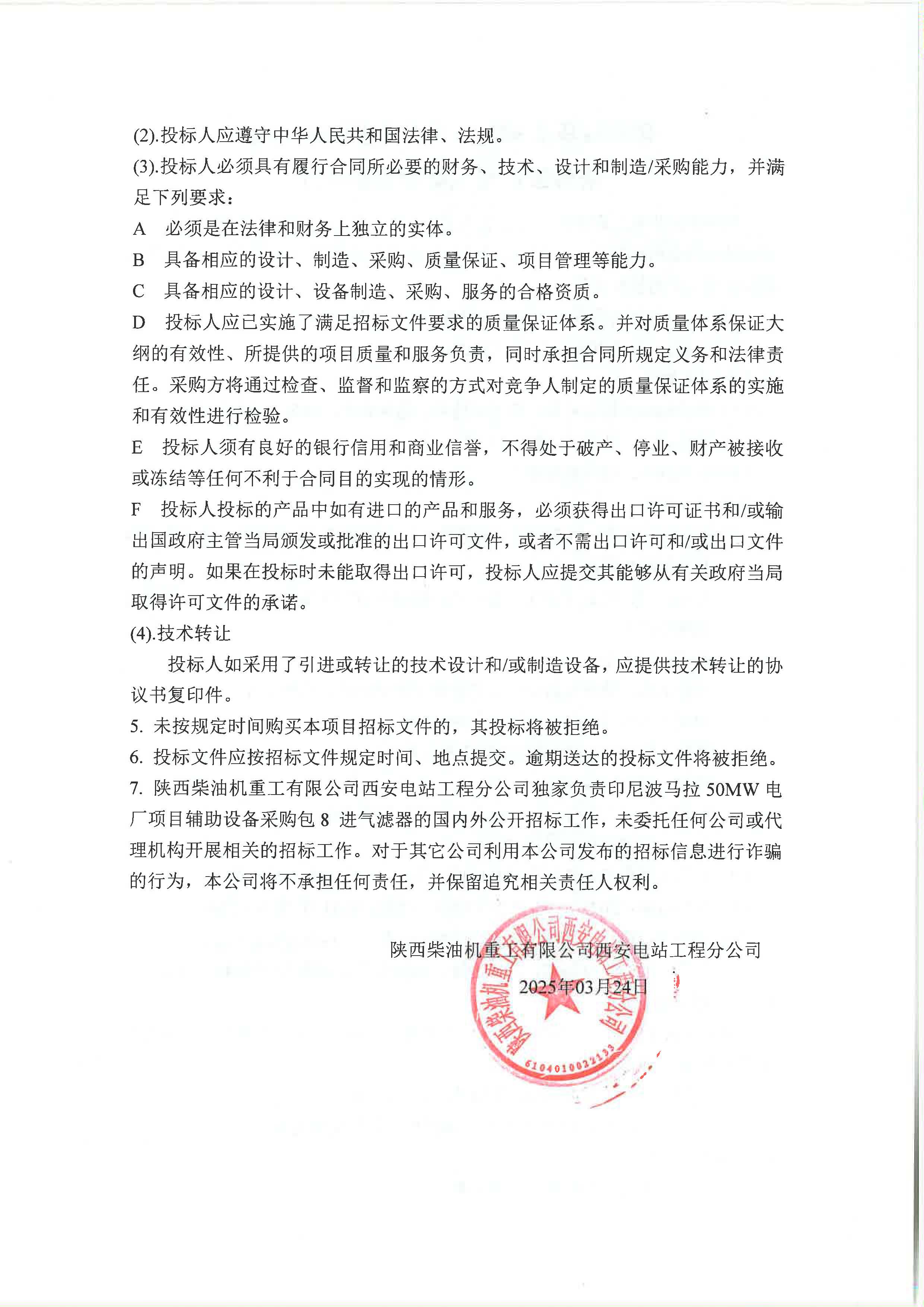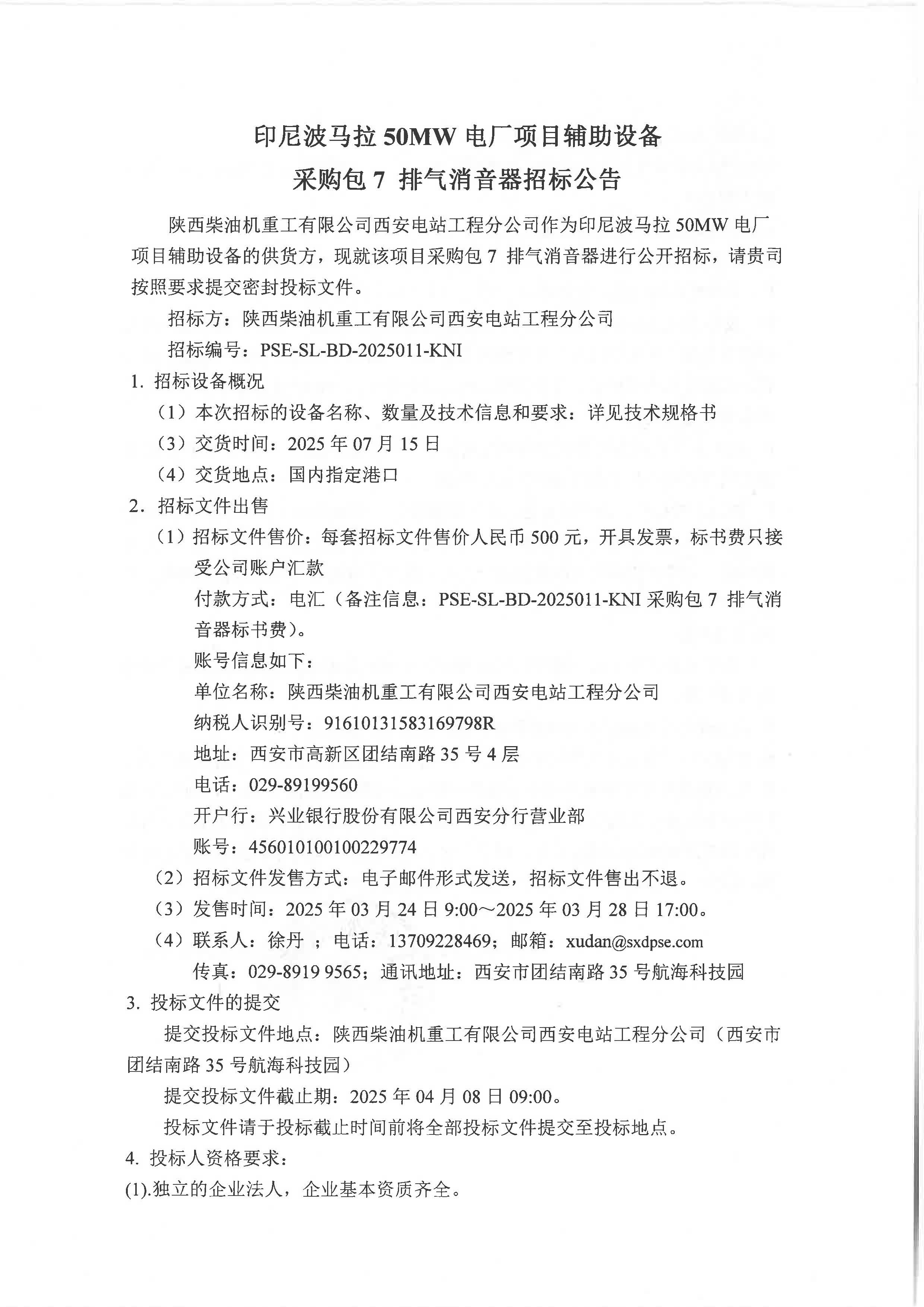印尼波馬拉50MW電廠項目輔助設備采購包7排氣消音器招標公告