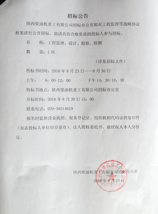 關(guān)于對工程監(jiān)理等戰(zhàn)略協(xié)議框架的招標公告