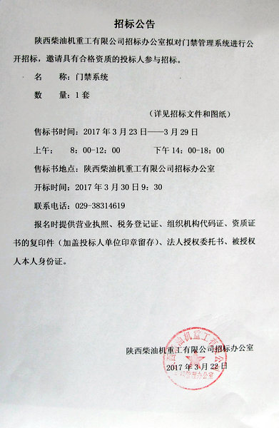門禁管理系統招標公告