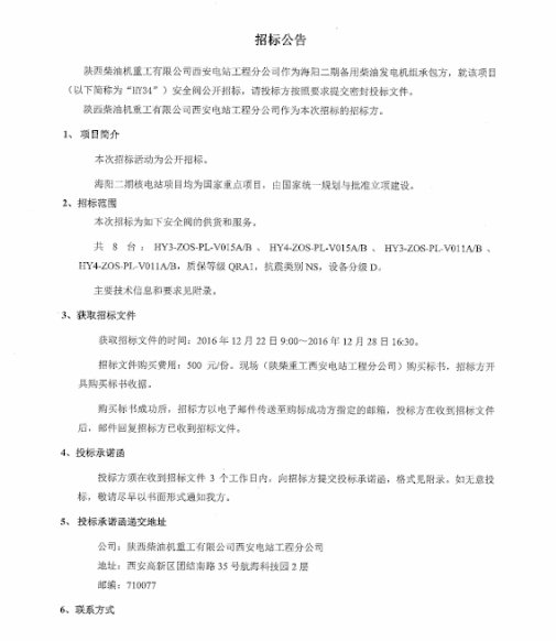 海陽(yáng)二期項(xiàng)目安全閥招標(biāo)公告