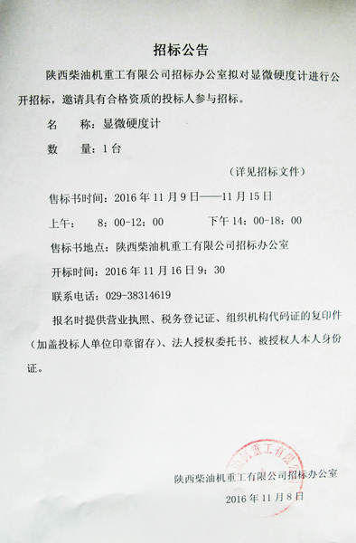 顯微硬度計招標公告
