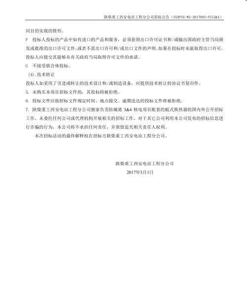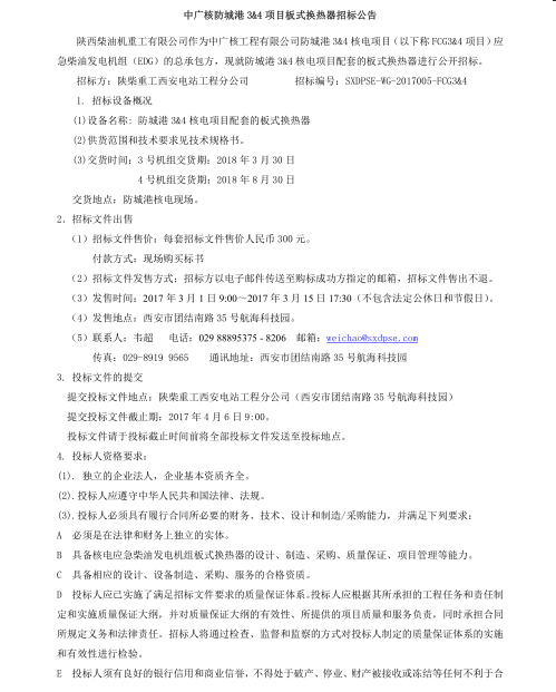 中廣核防城港項目板式換熱器招標(biāo)公告
