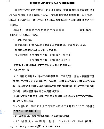 田灣核電站擴(kuò)建工程5/6號(hào)機(jī)組箱罐體供貨招標(biāo)公告